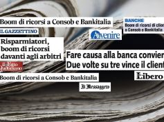 Inaccettabile silenzio banche su vertenze clienti e sindacato, Consob provveda 20 Dicembre 2017 “I numeri parlano chiaro, le vertenze promosse dalla clientela sono in continua crescita in tutto il sistema bancario. Non sono casi isolati alle…