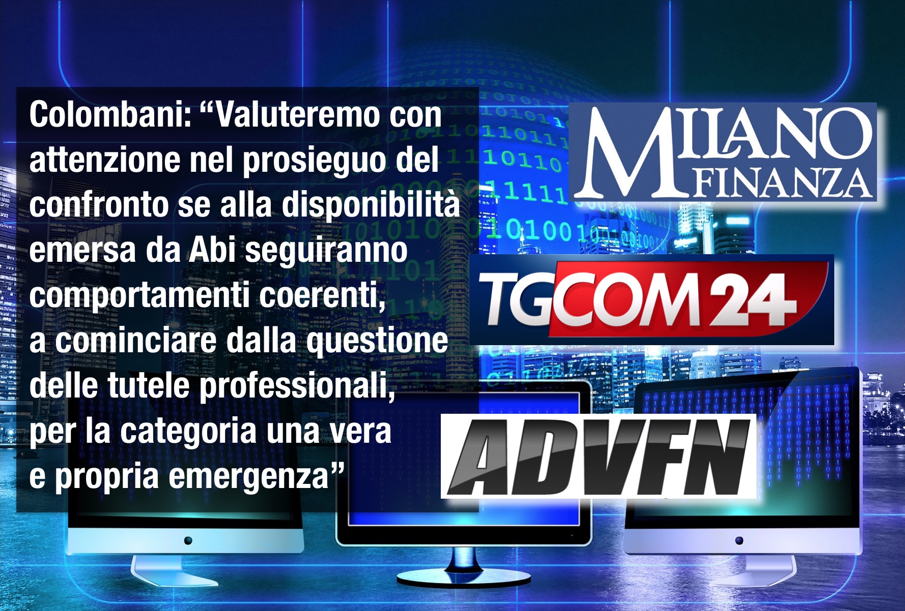 “Banche, First Cisl: apertura positiva, ora servono fatti” è il titolo con cui Milano Finanza, TgCom24 e Advfn rilanciano il servizio di MF Dow Jones con le dichiarazioni del segretario generale di First Cisl Riccardo Colombani a seguito dell’ultimo incontro tra sindacati e Abi per il rinnovo del contratto collettivo nazionale di lavoro del settore bancario.