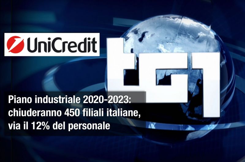 Le dimensioni e gli effetti del piano industriale di UniCredit trovano risalto nel Tg1 delle 20 di oggi 3 dicembre 2019. Il piano industriale, come spiega la giornalista Michela Coricelli, prevede che “chiuderanno 500 filiali, 450 italiane e degli 8mila tagli in Europa quasi 6mila riguarderanno dipendenti in Italia. Via il 12% del personale”.