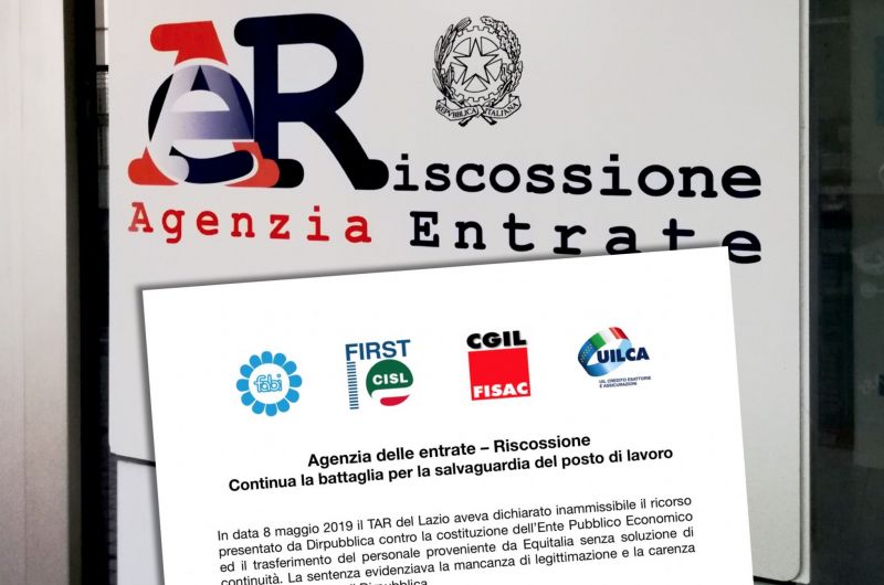 “In data 8 maggio 2019 il TAR del Lazio aveva dichiarato inammissibile il ricorso presentato da Dirpubblica contro la costituzione dell’Ente Pubblico Economico ed il trasferimento del personale proveniente da Equitalia senza soluzione di continuità. La sentenza evidenziava la mancanza di legittimazione e la carenza di interesse ad agire di Dirpubblica”. È quanto riporta un comunicato unitario delle segreterie nazionali di Fabi, First Cisl, Fisac Cgil e Uilca.