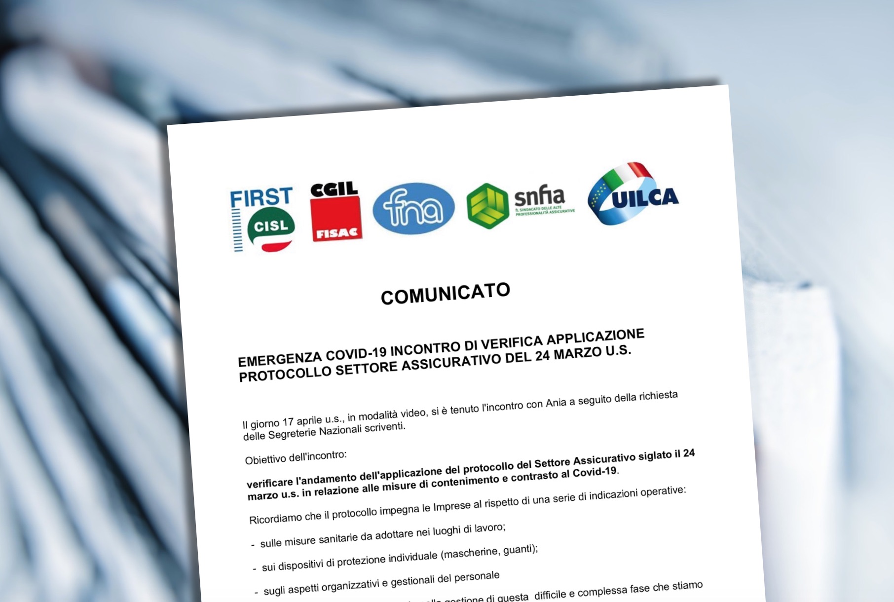 Nei giorni scorsi si è tenuto l’incontro con Ania a seguito della richiesta delle organizzazioni sindacali del settore. L’incontro aveva soprattutto l’obiettivo di verificare l’andamento dell’applicazione del protocollo del Settore Assicurativo siglato il 24 marzo u.s. in relazione alle misure di contenimento e contrasto al Covid-19; è quanto si legge nel comunicato unitario delle segreterie nazionali di First Cisl, Fisac Cgil, Fna, Snfia e Uilca.