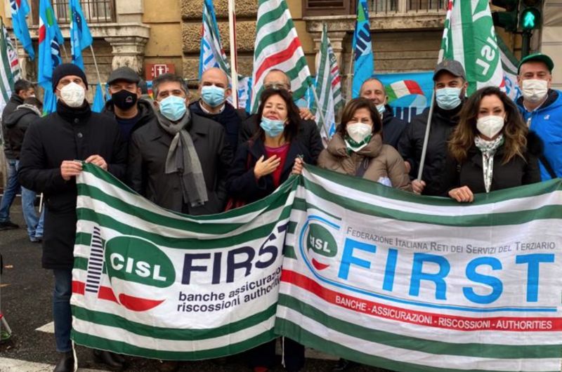 Questa mattina, a Roma, First Cisl, Fabi, Fisac Cgil e Uilca hanno tenuto un presidio sotto la sede del Ministero delle Finanze, presente anche Ignazio Ganga, segretario confederale Cisl con delega alle politiche previdenziali.