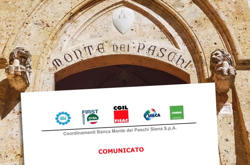 Il comunicato unitario delle segreterie di coordinamento Banca Monte dei Paschi Siena di Fabi, First Cisl, Fisac Cgil, Uilca e Unisin