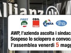 Aziende e territori Assicurativi. Il 2 maggio sciopero in AWP 26 Aprile 2023 Comunicato delle Rappresentanze sindacali aziendali First Cisl, Fisac Cgil, Fna e Uilca di AWP: A seguito della grande adesione delle lavoratrici…