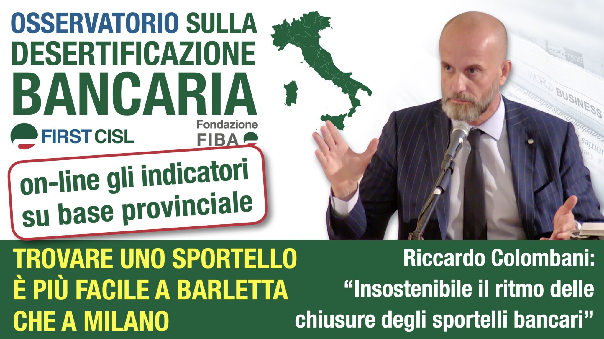 Qui tutti i dati e i grafici descrittivi della desertificazione bancaria in Italia, a cura di Fondazione Fiba