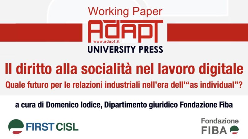 Qui il working paper della Fondazione Fiba di First Cisl per Adapt “Il diritto alla socialità nel lavoro digitale. Quale futuro per le relazioni industriali nell’era dell’‘as individual’?”