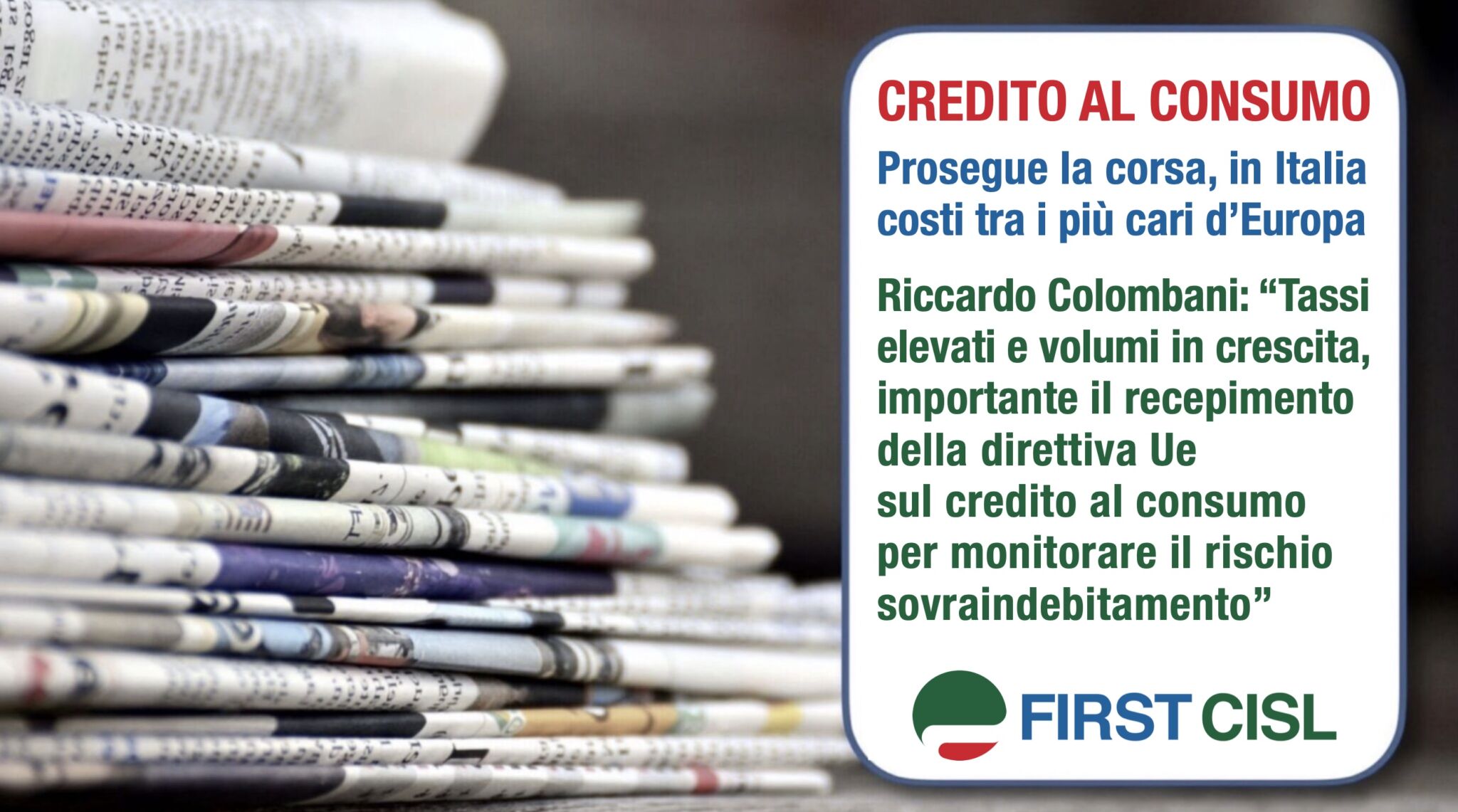 Agli organi di stampa il Segretario generale nazionale First Cisl Riccardo Colombani evidenzia l’importanza di recepire la direttiva Ue sul credito al consumo per monitorare il rischio sovraindebitamento.