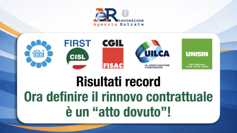 Agenzia delle Entrate-Riscossione: risultati record, ora definire il rinnovo contrattuale è un “Atto dovuto”!