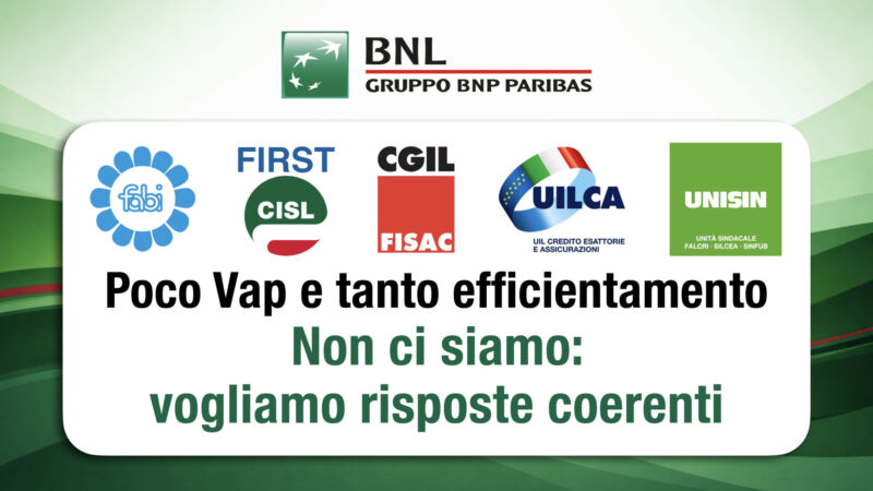 Di seguito il comunicato unitario delle Segreterie di coordinamento Gruppo Bnl di Fabi, First Cisl, Fisac Cgil, Uilca e Unisin: