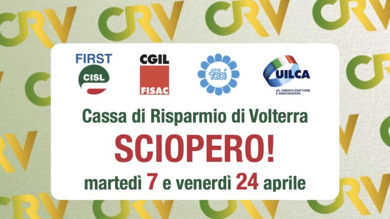 Facendo seguito alla comunicazione del 26 marzo 2026, con la quale si rendeva noto l’esito negativo del tentativo di conciliazione presso Abi, le organizzazioni sindacali aziendali della Cassa di Risparmio di Volterra S.p.A. confermano lo stato di agitazione del personale e