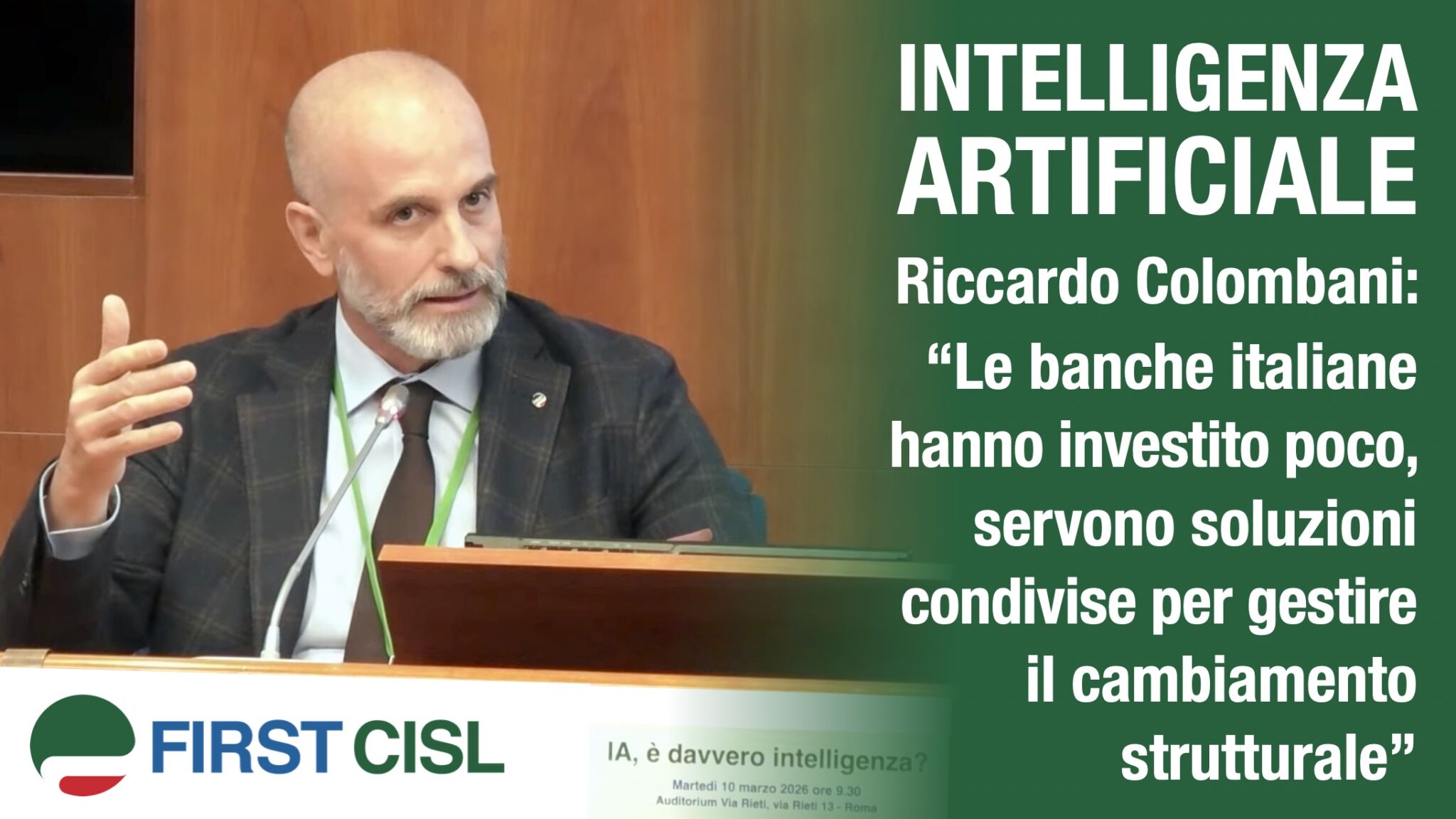 “Le banche italiane finora hanno investito molto poco sulle nuove tecnologie. Lo dicono i dati della Cipa, la Convenzione interbancaria per l’automazione, secondo cui nel 2024 sono stati investiti solo 2,1 miliardi di euro. Del resto Intesa Sanpaolo, dal ’22 sino ad oggi ha realizzato investimenti per 5,6 miliardi di euro e ne ha annunciati 4,6 per il nuovo piano d’impresa. Insomma 10,2 miliardi in otto anni, poco più delle commissioni nette incassate nel 2025, pari a quasi 10 miliardi di euro. Significa che c’è molto da fare ancora. Ma il processo d’investimento va condiviso per assicurare la preminenza del lavoro. Tra i tanti studi sulla materia, ha colpito molto un’analisi recente della Citrini Research che paventa una forte crisi che passerebbe dalla sostituzione del lavoro, dovuta all’aumento della produttività per l’utilizzo di sistemi di intelligenza artificiale. Anziché redistribuire la produttività ai lavoratori, secondo lo studio, la ricerca determinerebbe la sostituzione progressiva del lavoro. Al contrario, per noi, l’intelligenza artificiale non solo non potrà mai essere sostitutiva, ma sempre al servizio del lavoro che dovrà essere sempre adeguatamente retribuito”, ha concluso Colombani.
