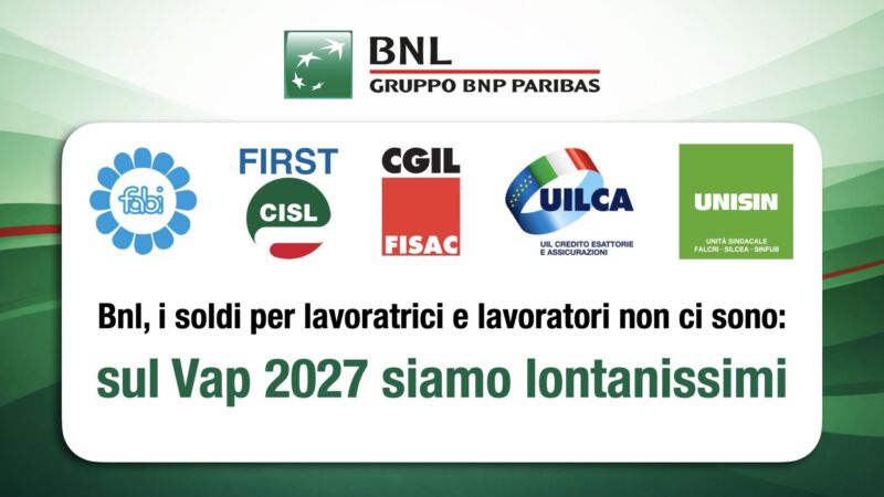Si riporta il comunicato unitario delle Segreterie di coordinamento del Gruppo Bnl di Fabi, First Cisl, Fisac Cgil, Uilca e Unisin: