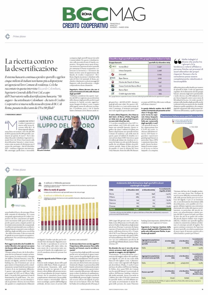 Leggi l’intervista del Segretario generale nazionale First Cisl Riccardo Colombani su Bcc Mag, la rivista della Bcc Roma: