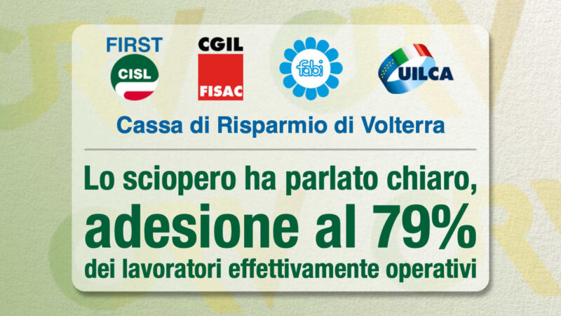 Di seguito il comunicato delle Rappresentanze sindacali aziendali Fabi, First Cisl, Fisac Cgil e Uilca in CR Volterra:
