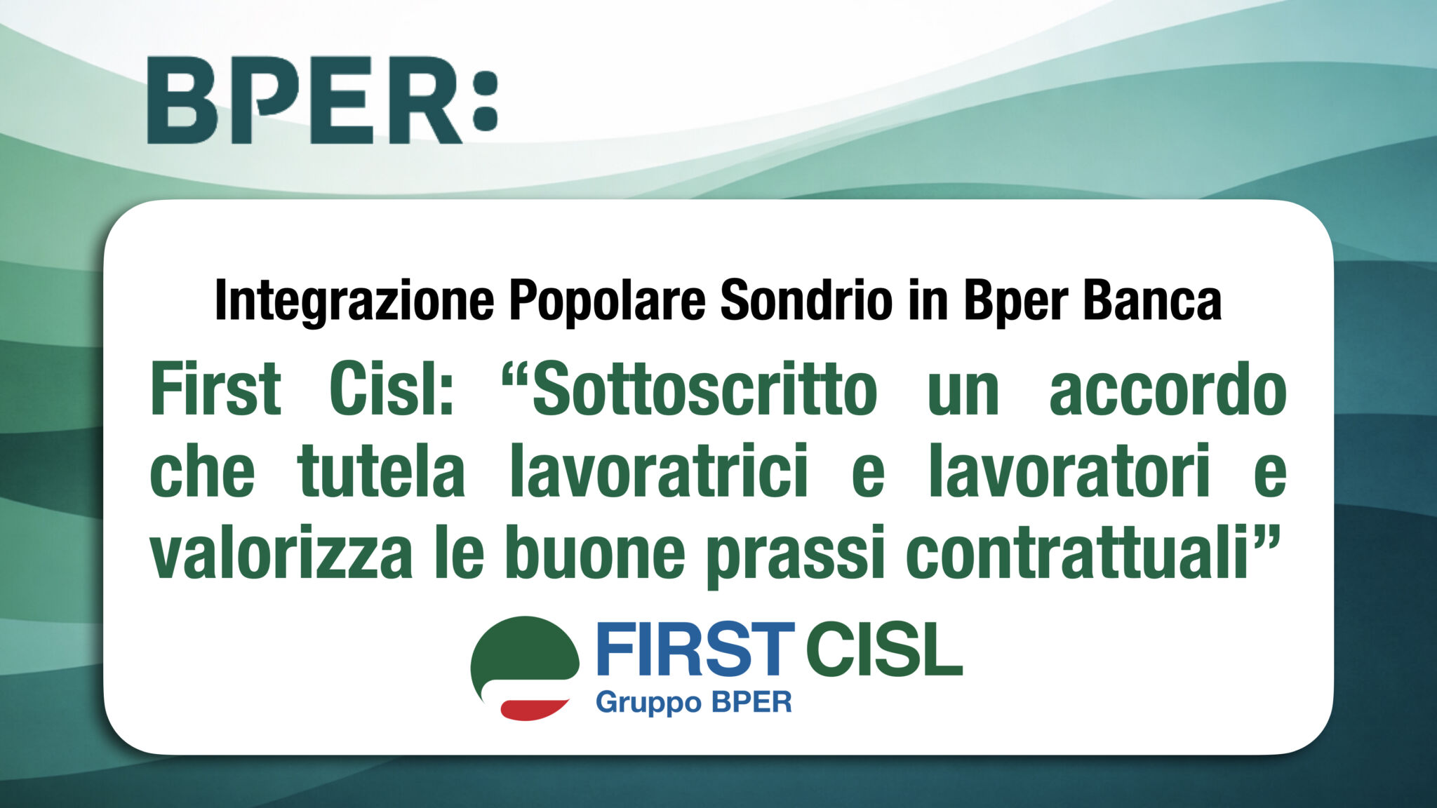 Gruppo Bper, First Cisl: accordo di integrazione con Popolare di Sondrio tutela i lavoratori e valorizza le buone prassi contrattuali