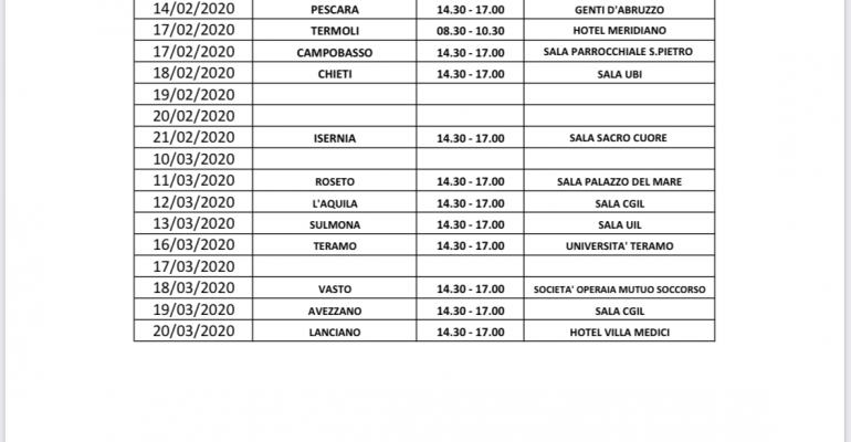 Abruzzo/Molise: Date Assemblee Approvazione Contratto Nazionale ABI 2 Febbraio 2020 Ecco l’elenco delle date delle assemblee in Abruzzo e Molise per l’approvazione del contratto nazionale…