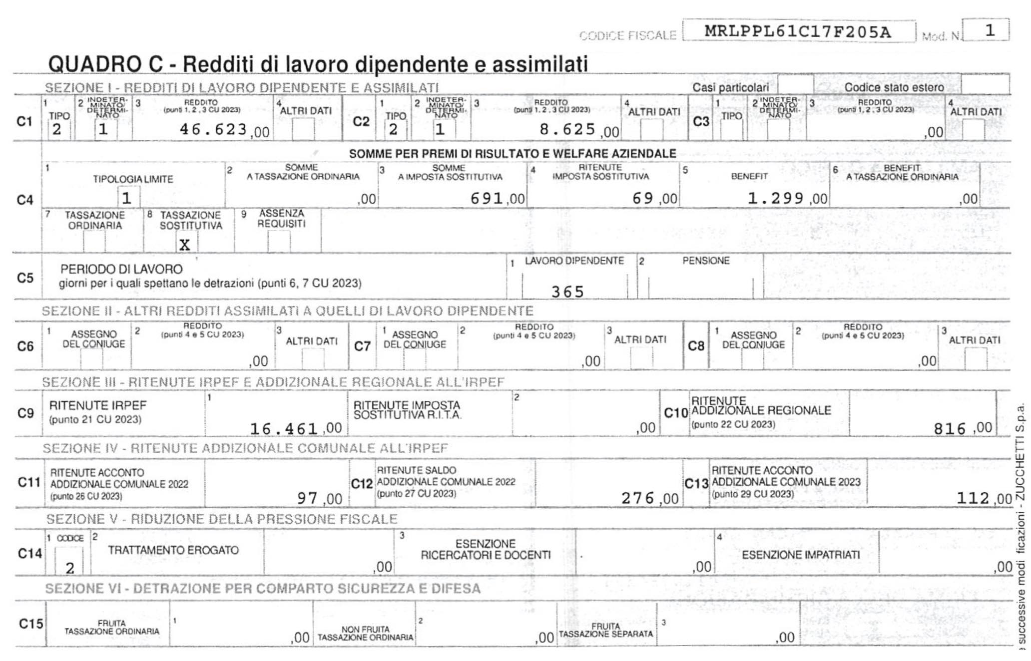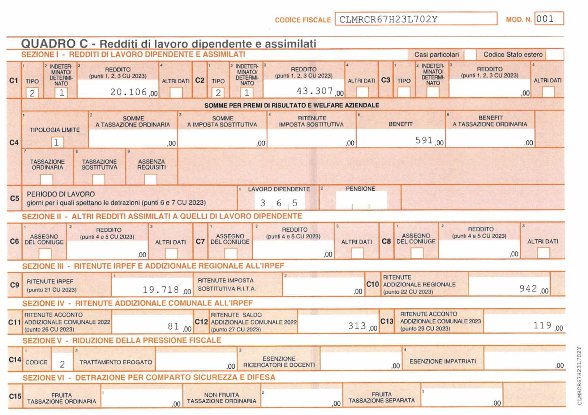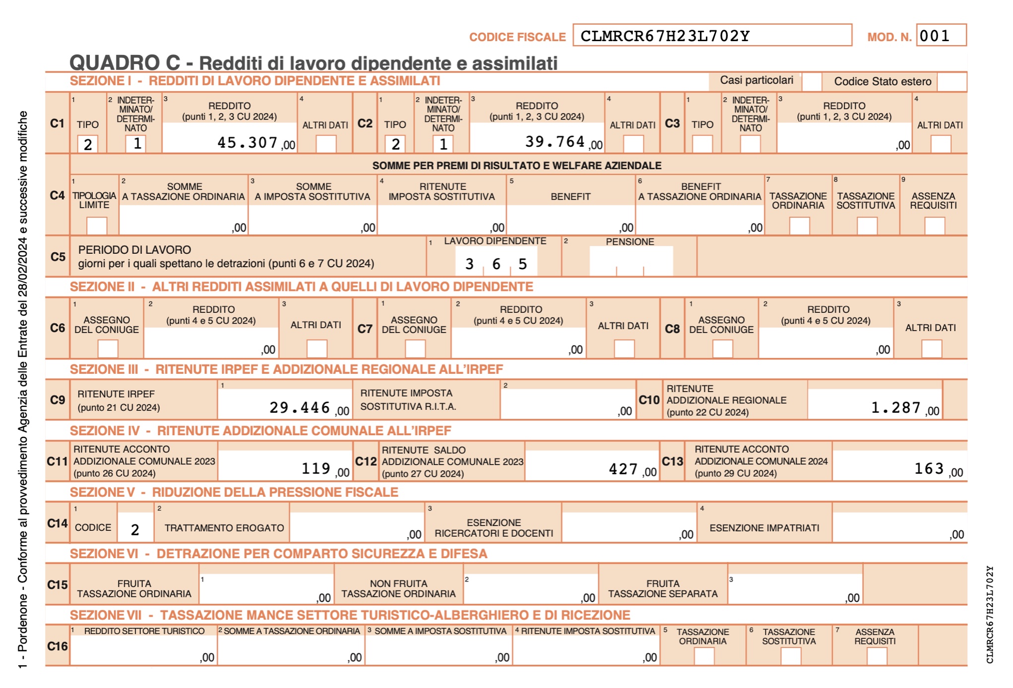 - Redditi 2023 – Quadro C Mod. 730 2024
