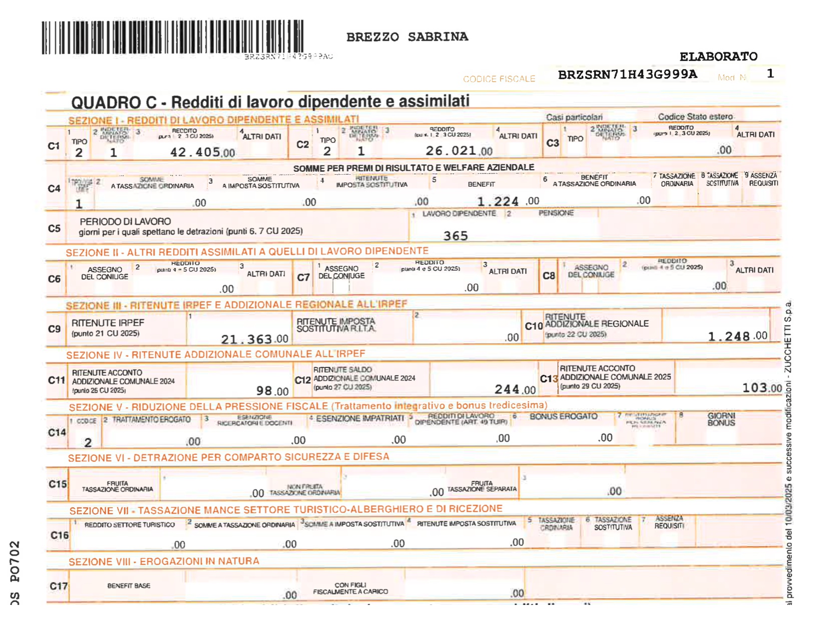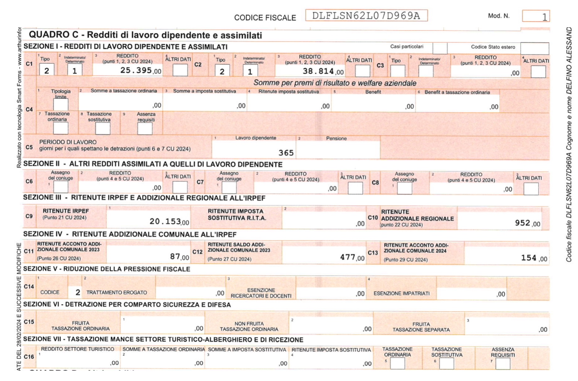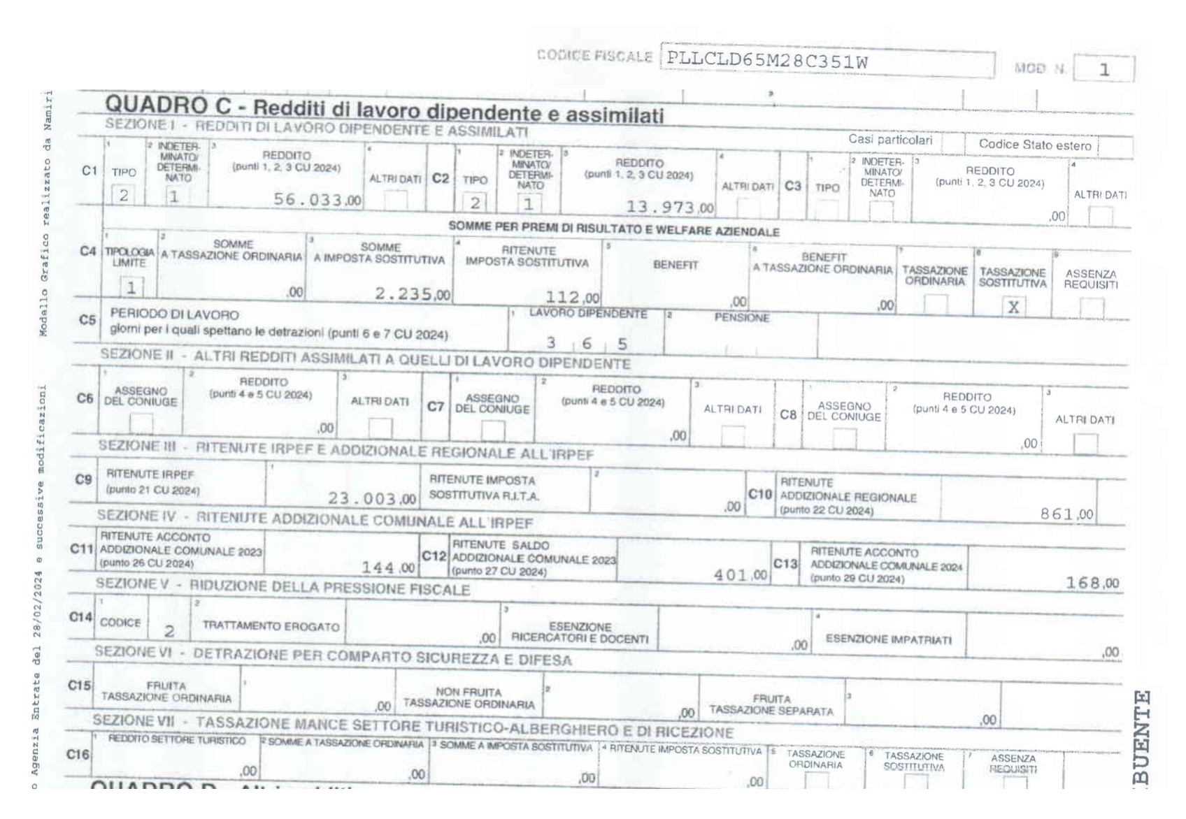 - Redditi 2024 – Quadro C Mod. 730 2025