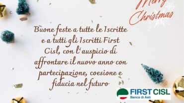 Auguri di buone feste dalla Segreteria First Cisl Banca di Asti. Buone feste a tutte le Iscritte e a tutti gli Iscritti First Cisl, con l’auspicio di affrontare il nuovo anno con partecipazione, coesione e…