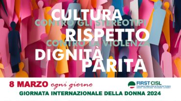 First Cisl, tenendo a fondamento della sua attività quotidiana il principio della pari dignità, si impegna perché sia l’8 marzo ogni giorno.