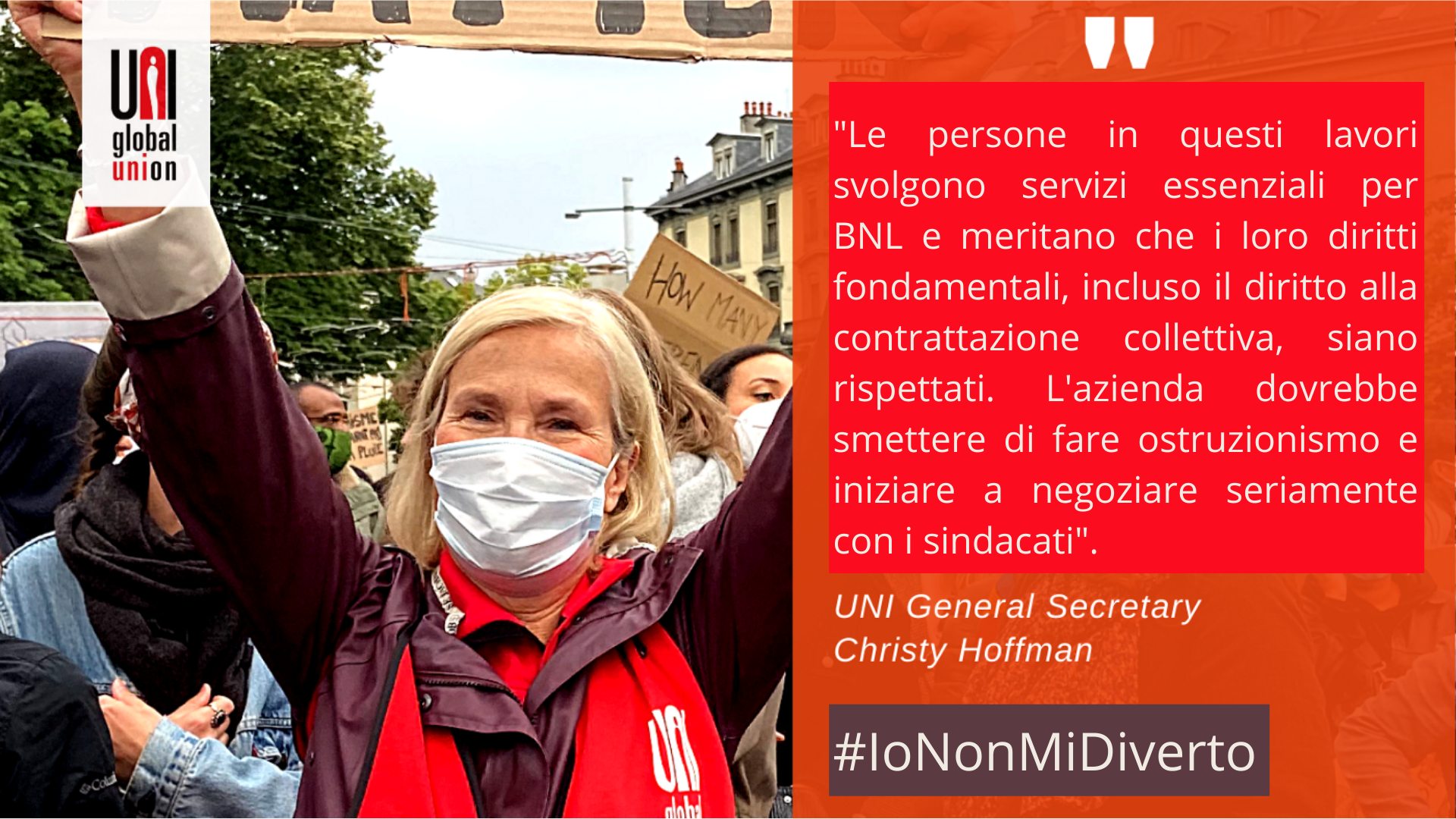 “Le persone in questi lavori svolgono servizi essenziali per BNL e meritano che i loro diritti fondamentali, incluso il diritto alla contrattazione collettiva, siano rispettati“, ha affermato Christy Hoffman, Segretario generale di UNI Global Union. “L’azienda dovrebbe smettere di fare ostruzionismo e iniziare a negoziare seriamente con i sindacati“.