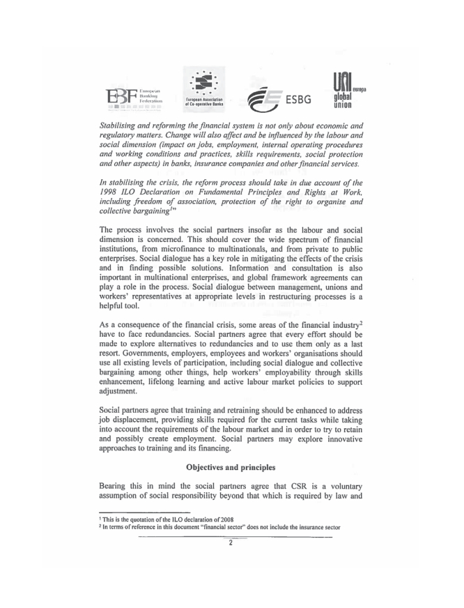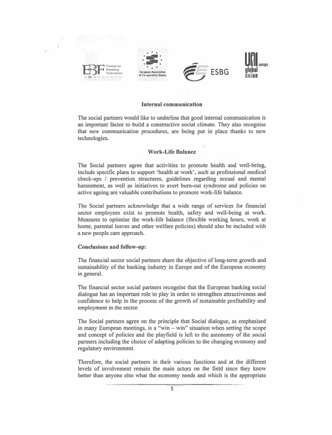• Appendice 9 – Dichiarazione congiunta delle Parti sociali europee del settore bancario sulla responsabilità sociale d’impresa del gennaio 2014
