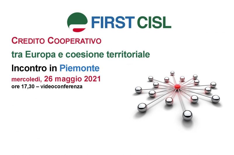 “Credito cooperativo, tra Europa e coesione territoriale”; questo il titolo dell’evento via web organizzato da First Cisl Piemonte, che si terrà mercoledì 26 maggio alle ore 17.30.