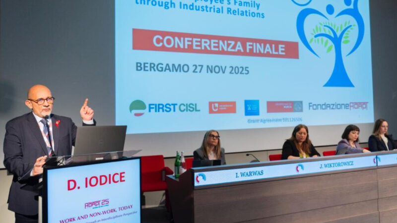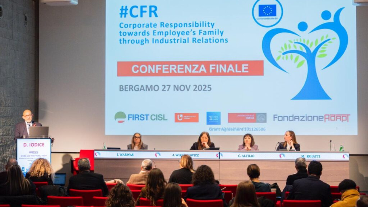 In occasione della XV edizione di Adapt International Conference 2025, “Work and non-work, today. Reframing the issue through an interdisciplinary perspective”, si è svolta venerdì scorso, al Centro congressi Giovanni XXIII di Bergamo, la conferenza conclusiva del progetto europeo “#Cfr – Responsabilità familiare d’impresa attraverso le relazioni industriali”, promosso da First Cisl e finanziato dalla Commissione europea. Domenico Iodice, Project manager del progetto e Segretario nazionale First Cisl con delega sul Credito Cooperativo, ha aperto la giornata con una relazione dettagliata sulle risultanze di due anni di ricerca, studio, formazione e dibattito.