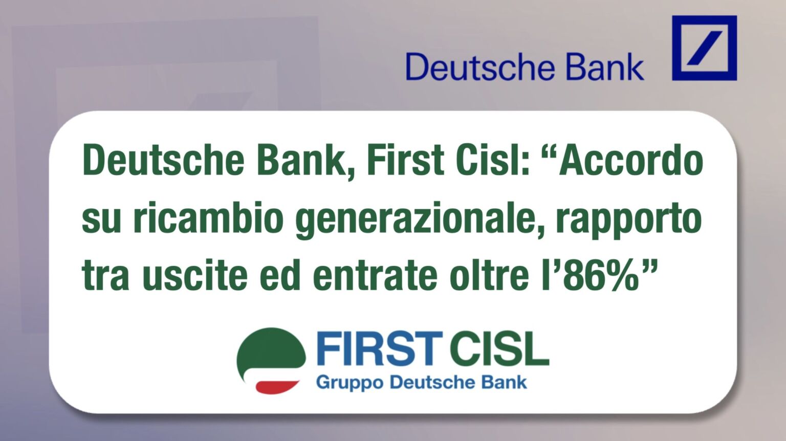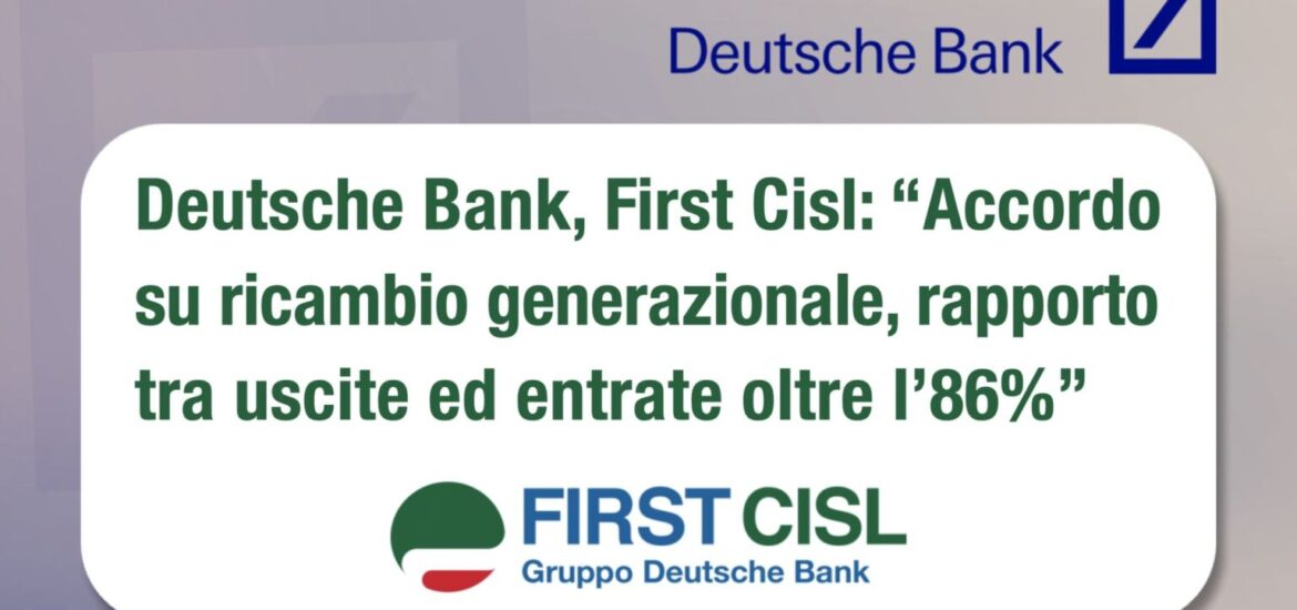 “È positivo che l’accordo preveda che l’incentivazione all’esodo sia accompagnata da un adeguato ricambio generazionale a tutela dell’occupazione. L’accordo prevede infatti 24 assunzioni, con contratto a tempo indeterminato, cui si vanno ad aggiungere almeno altre due assunzioni di donne vittime di violenza di genere, una percentuale pari all’86,6% delle uscite programmate, la più alta mai raggiunta in Deutsche Bank”, commenta Simona Maggi, Segretaria responsabile First Cisl Deutsche Bank.