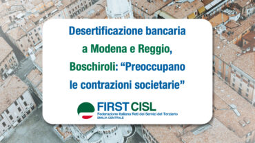 Desertificazione bancaria a Modena e Reggio, Boschiroli: “Preoccupano le contrazioni societarie” L’analisi della desertificazione bancaria nelle province di Modena e Reggio nell’Emilia, sulla base dei dati aggiornati al 30 settembre 2025,…