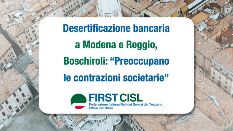 A rendere il quadro ancor più delicato interviene la prospettiva evolutiva del sistema bancario nazionale. Sul punto, Leonello Boschiroli, Segretario generale First Cisl Emilia Centrale, sottolinea: “Preoccupano i rumors di una probabile futura acquisizione di Crédit Agricole Italia con Banco Bpm e della conseguente fusione. Nelle due province, gli sportelli di Crédit Agricole Italia sono presenti negli stessi comuni di quelli del Banco Bpm, e ciò provocherebbe una razionalizzazione e una ulteriore chiusura di sportelli”. Una prospettiva che conferma come, anche nei territori oggi più resilienti, il rischio di desertificazione non sia un fenomeno remoto o marginale, ma una variabile concreta che richiede vigilanza, presidio istituzionale e una strategia sindacale capace di difendere comunità e coesione territoriale.
