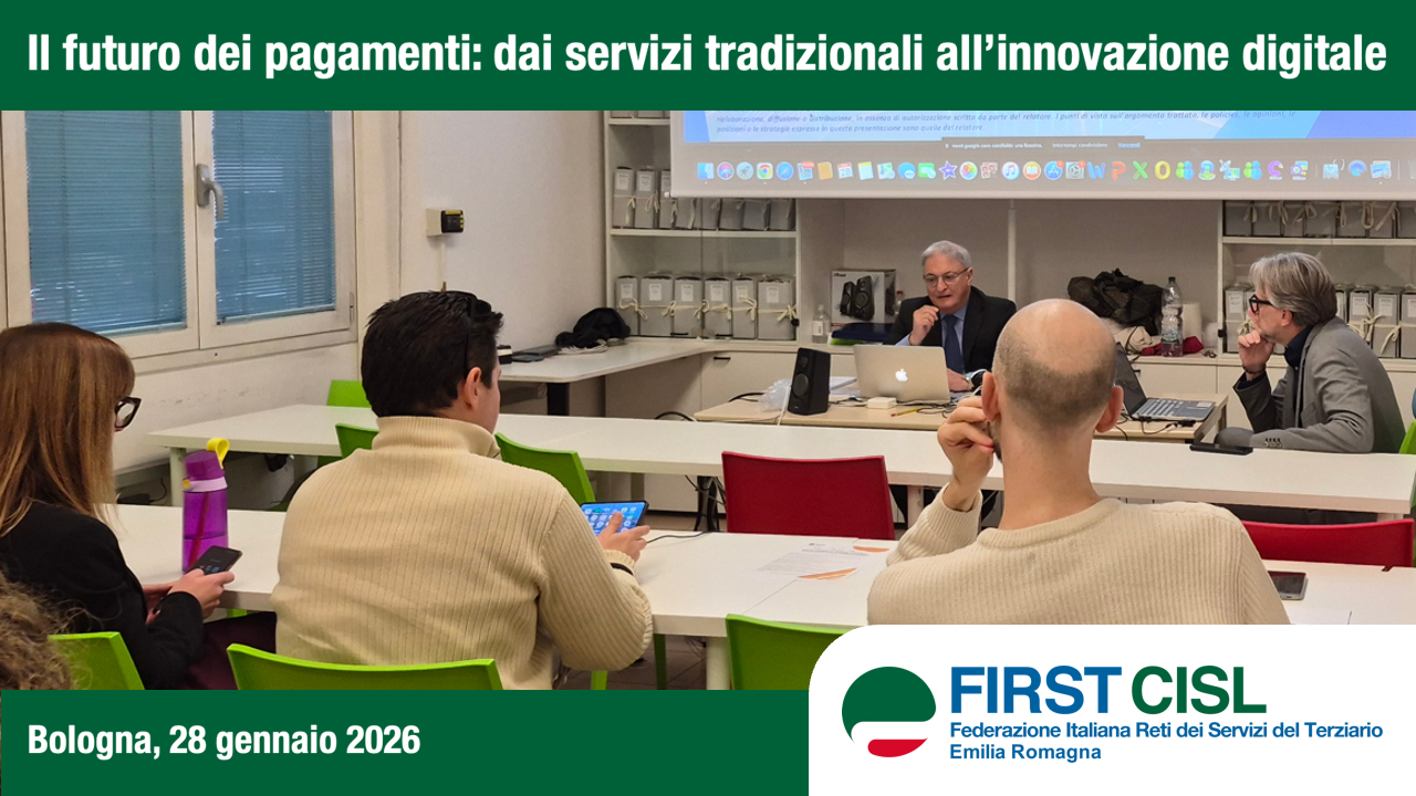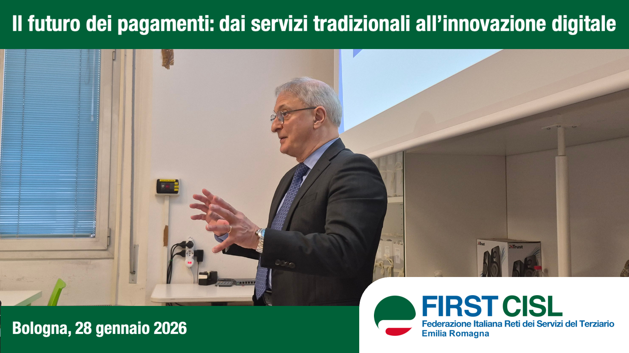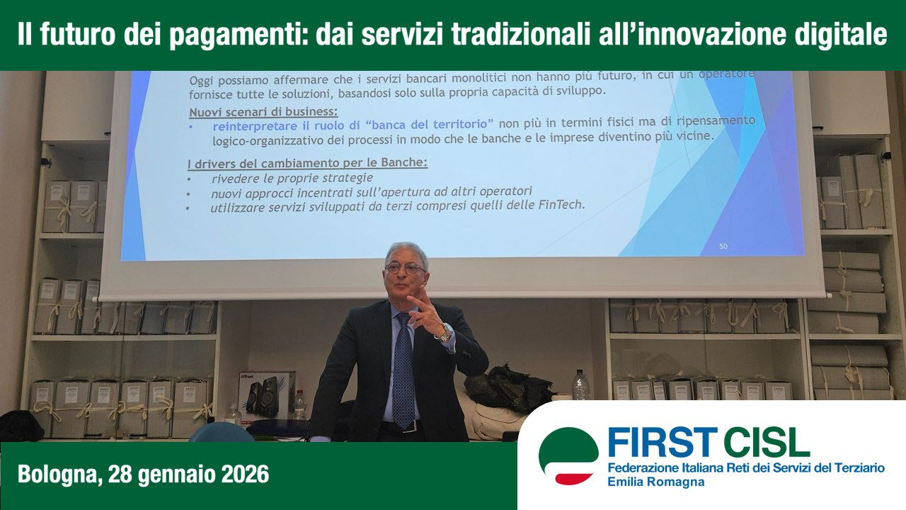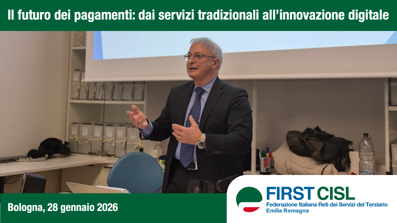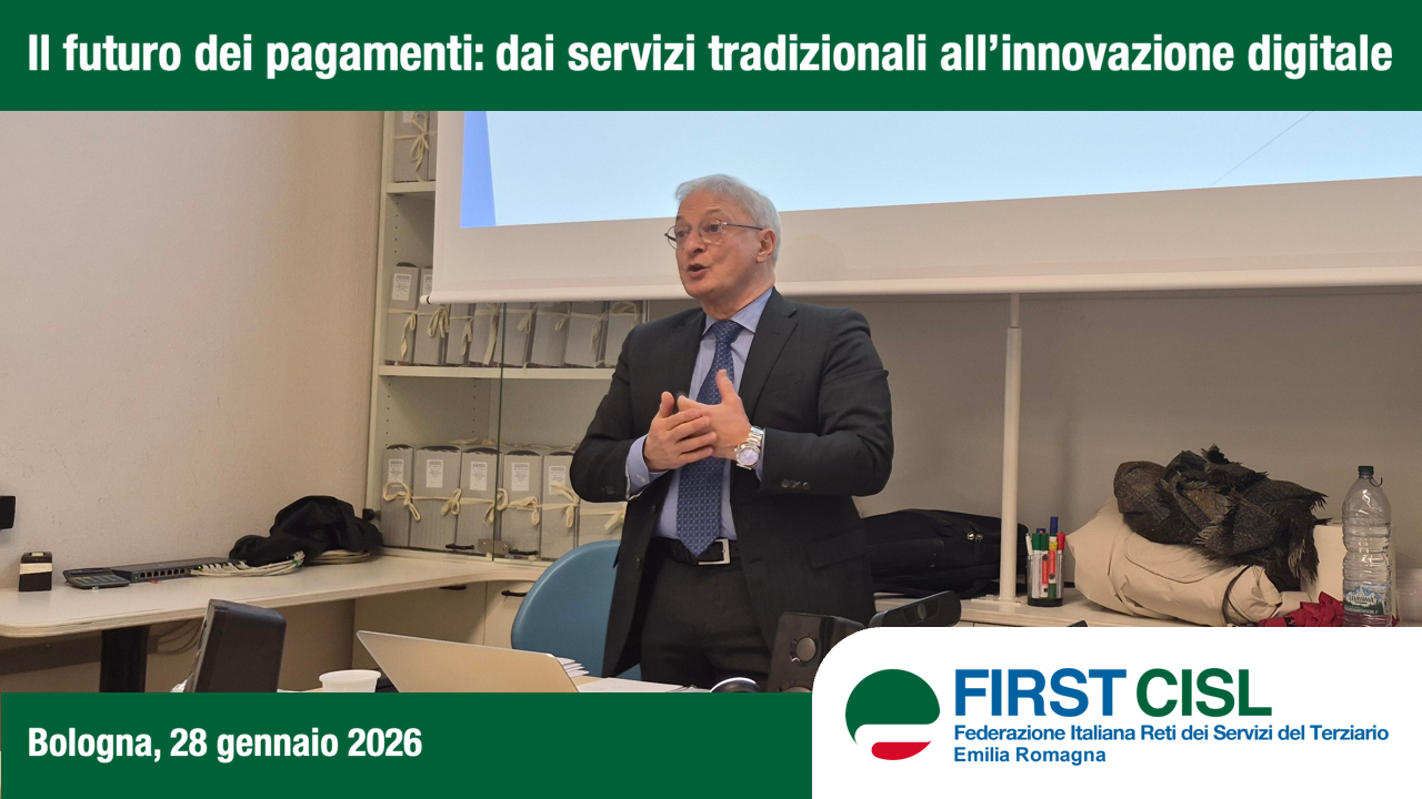 Questo è quanto emerso durante il primo dei due incontri del percorso formativo SAP (Sviluppo Alte Professionalità), organizzato a Bologna mercoledì 28 gennaio da DirFirst Emilia Romagna in collaborazione con First Cisl Emilia Romagna e tenuto dal professor Marco Urbani, già responsabile dei sistemi di pagamento di Banco BPM e docente presso l’Università Cattolica.