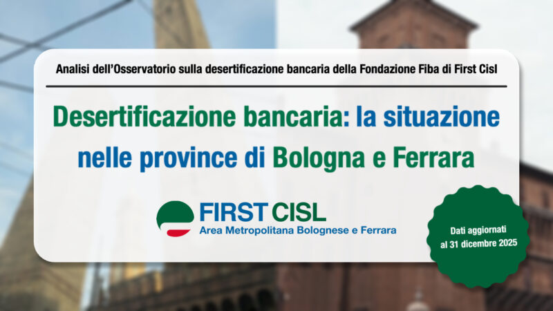 Tra il 31 dicembre 2024 e il 31 dicembre 2025 l’Emilia Romagna ha registrato un’ulteriore riduzione della rete bancaria fisica, pur mantenendo una posizione di relativa solidità nel confronto nazionale. È quanto emerge dall’aggiornamento dell’Osservatorio sulla desertificazione bancaria della Fondazione Fiba di First Cisl, che elabora i dati resi disponibili da Banca d’Italia e Istat.