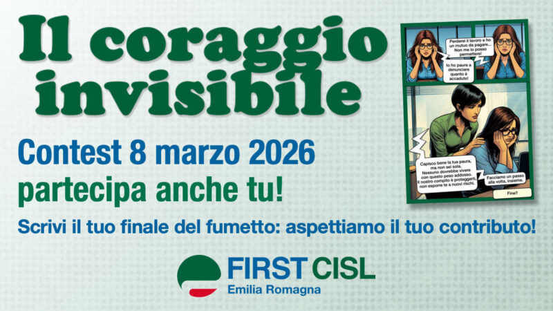 First Cisl Emilia Romagna ha realizzato il fumetto “Il coraggio invisibile”, in occasione della Giornata internazionale contro la violenza sulle donne del 25 novembre scorso: vogliamo continuare a parlare di molestie e violenza di genere nei luoghi di lavoro.