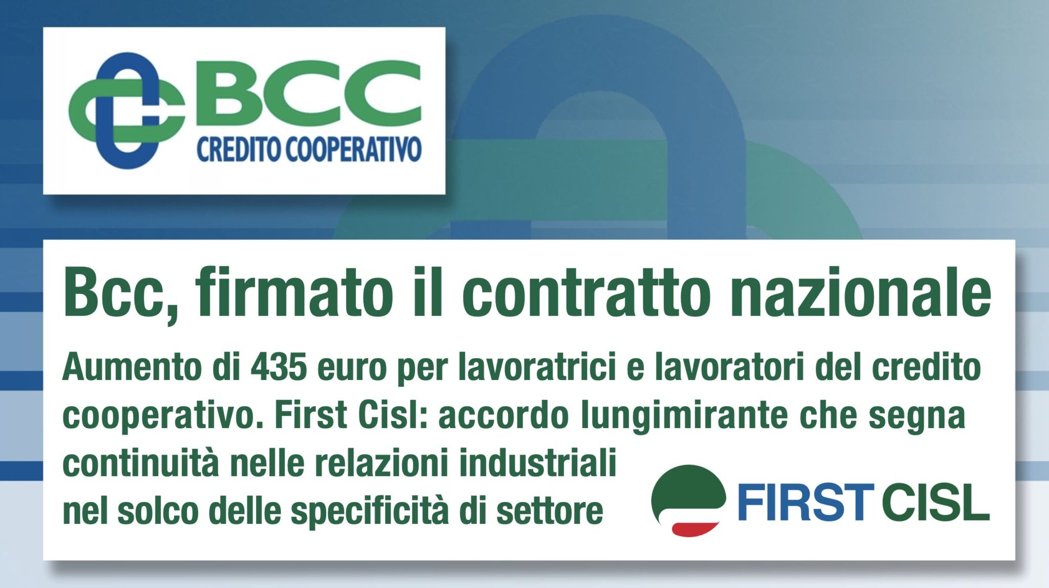 “L’accordo di rinnovo rappresenta un segnale di continuità nelle relazioni industriali nel sistema – commentano Pier Paolo Merlini, segretario nazionale First Cisl con delega alle Bcc, e Gianluca Pernisco, coordinatore nazionale settore CooperFirst – in cui le parti condividono nuove soluzioni normative ed economiche, confermando l’impianto contrattuale vigente che regola i rapporti di lavoro nel sistema del Credito Cooperativo e mantenendo e valorizzando le specificità del settore. L’aumento di 435 euro, il riconoscimento di arretrati, la riduzione dell’orario settimanale di lavoro, una rinnovata valorizzazione della bilateralità di sistema ed il tema della partecipazione sono tra gli elementi imprescindibili sui quali First Cisl ha profuso il suo impegno sin dalla realizzazione della piattaforma di rinnovo”.