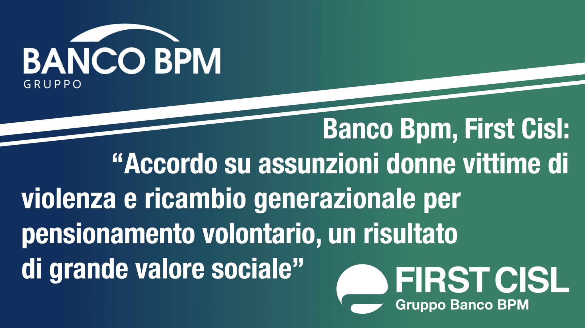 First Cisl, insieme alle altre organizzazioni sindacali, ha sottoscritto con il gruppo Banco Bpm un importante accordo che bilancia il ricambio generazionale con una forte attenzione all’occupazione e alla tutela delle categorie più fragili. L’intesa definisce un piano di 120 uscite per pensionamento volontario anticipato a fronte delle quali è stata ottenuta una percentuale del 75% pari a 90 assunzioni, garantendo così un adeguato equilibrio tra nuove professionalità in ingresso e mantenimento dei livelli occupazionali. Le nuove assunzioni saranno allocate tra rete commerciale e sedi centrali in proporzione alle uscite, e saranno suddivise in tre scaglioni con ingressi programmati entro il 15 marzo, il 1° giugno e il 1° ottobre.