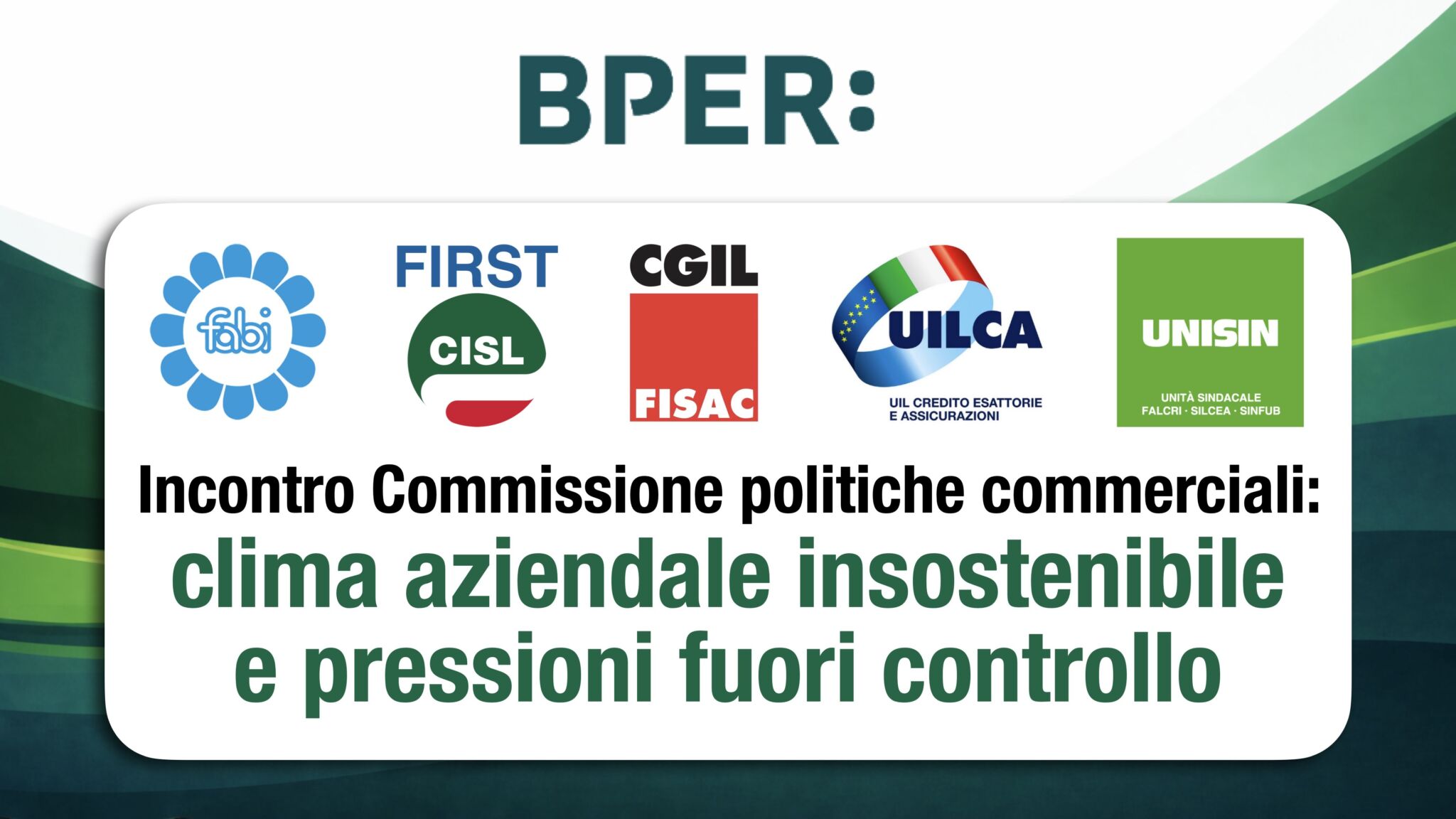 Si riporta il comunicato unitario dei Coordinamenti sindacali Gruppo Bper di Fabi, First Cisl, Fisac Cgil, Uilca e Unisin: