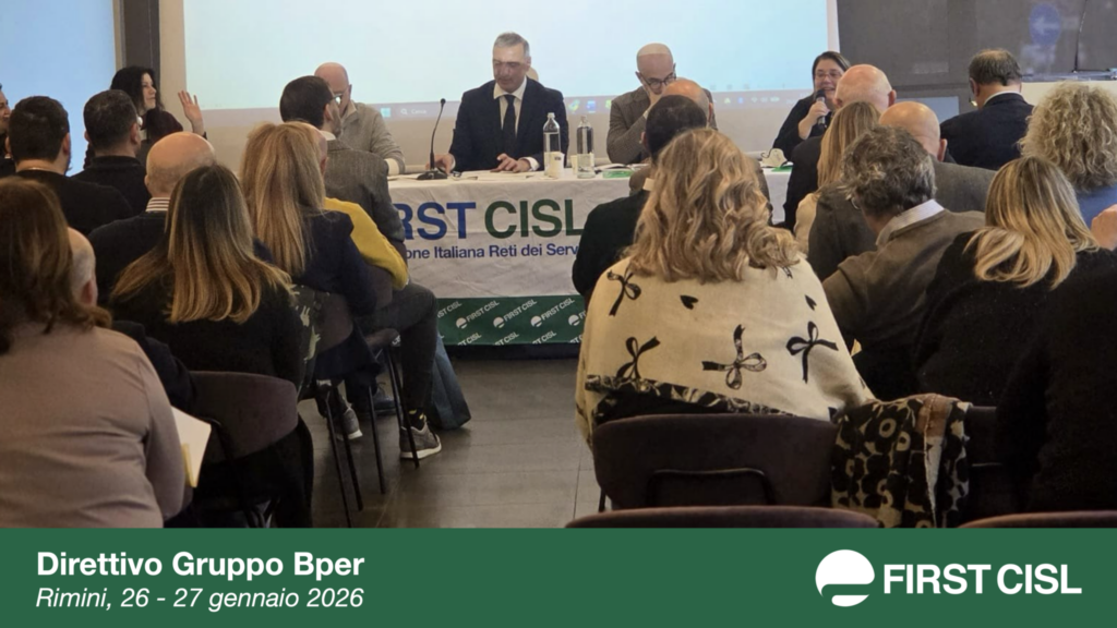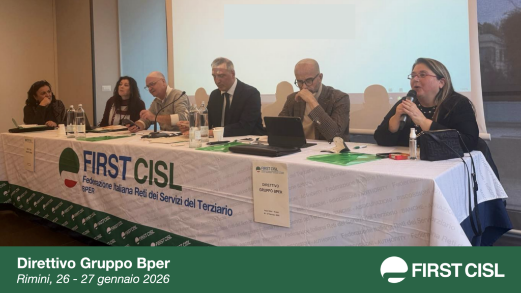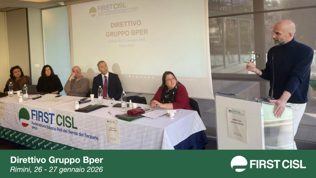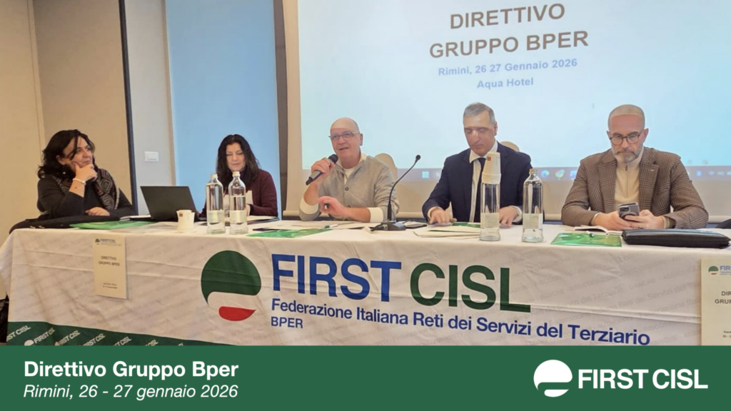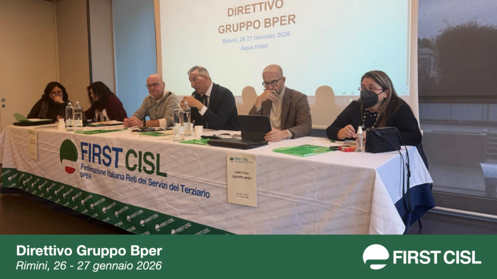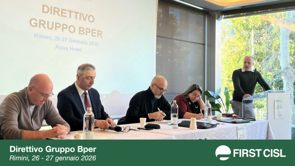 Si è svolto a Rimini, il 26 e 27 gennaio, il Direttivo First Cisl Gruppo Bper. Al centro dei lavori, oltre a diversi adempimenti organizzativi e all’analisi degli accordi recentemente sottoscritti, il completamento del percorso di integrazione sindacale con i colleghi provenienti da Banca Popolare di Sondrio integrati nel direttivo ed eletti in segreteria. Ai lavori ha partecipato il Segretario generale nazionale First Cisl, Riccardo Colombani.