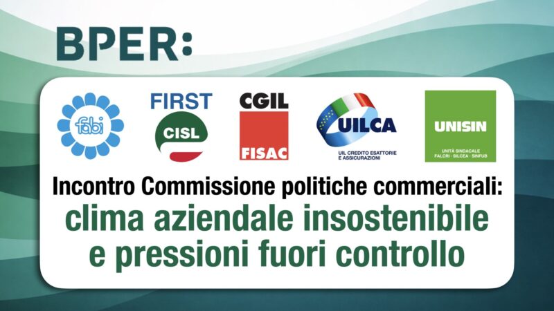 Gruppo Bper, incontro Commissione politiche commerciali: clima aziendale insostenibile e pressioni fuori controllo