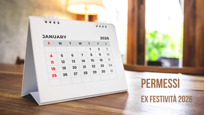 Per l’anno 2026 le giornate di permesso retribuito relative alle festività soppresse sono pari a 5 per le Aree Professionali e 4 per i Quadri Direttivi (ricordiamo che la categoria dei Quadri Direttivi ed i Dirigenti contribuiscono con una giornata di “ex-festività” ad alimentare il Fondo per l’Occupazione, mentre la categoria delle Aree professionali contribuisce con il versamento di 7 ore e 30 minuti di banca ore).