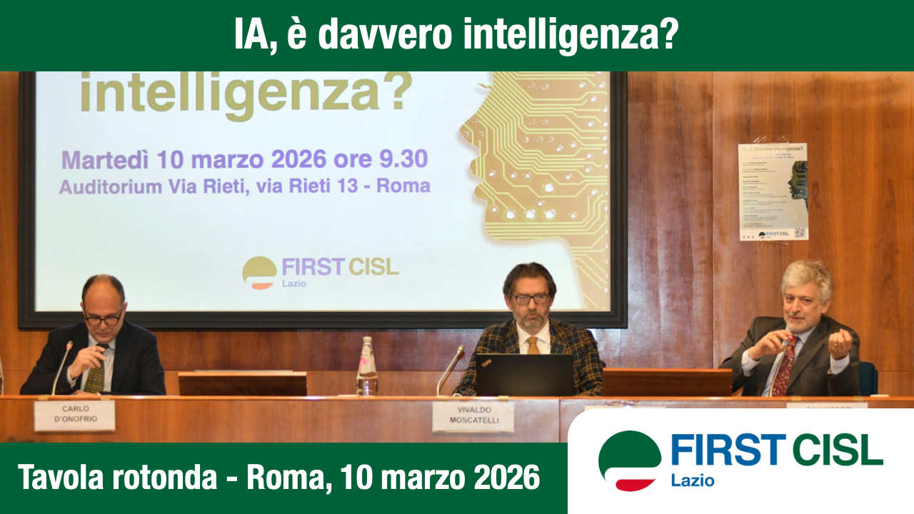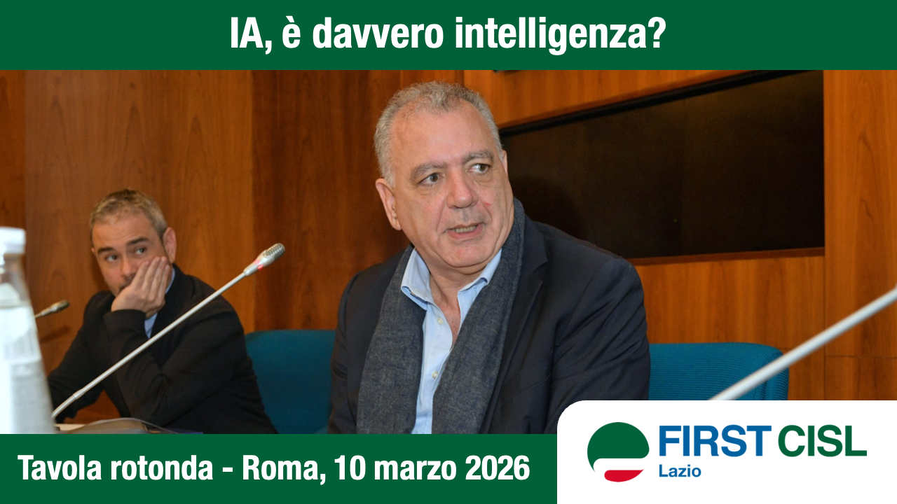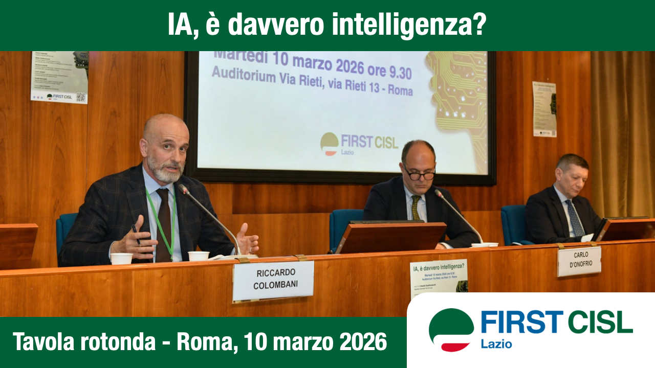 Riccardo Colombani, Segretario Generale First Cisl, ha partecipato alla tavola rotonda “IA, è davvero intelligenza?” organizzata da First Cisl Lazio: