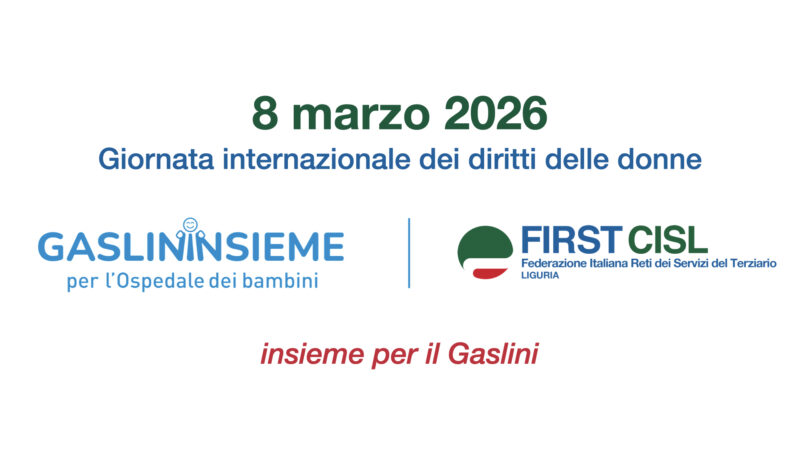 in occasione dell’8 marzo, Giornata Internazionale della Donna, First Cisl Liguria ha scelto anche quest’anno di compiere un gesto concreto di solidarietà, destinando una donazione alla Fondazione Gaslininsieme, realtà impegnata a sostenere le attività dell’Istituto Giannina Gaslini di Genova, uno dei più importanti ospedali pediatrici in Italia e in Europa.