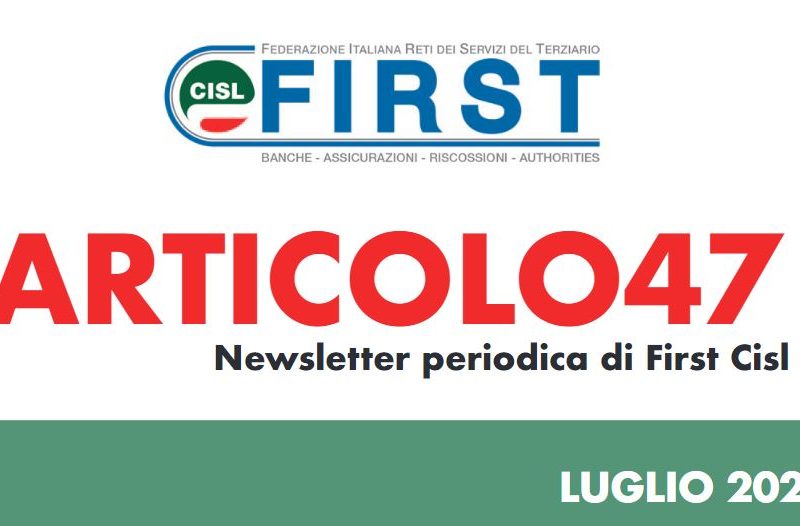 ARTICOLO47, la nuova newsletter periodica di First Cisl, attraverso la quale affrontare temi che risultino il più possibile di comune interesse per tutti i lavoratori del credito, delle assicurazioni, della riscossione e delle authority.