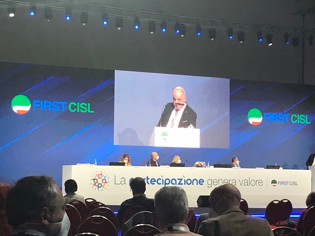 In questi giorni, dall’11 al 14 aprile, si sta svolgendo a Roma presso il Marriot Park Hotel il 2° Congresso della First/Cisl che vede un programma ricco di eventi e tavole rotonde sui seguenti. temi: “Futuro della finanza tra sostenibilità e digitalizzazione”; “Europa tra regole e crescita:la sfida per banche e assicurazioni”; Educazione finanziaria e responsabilità sociale delle imprese bancarie” e “il valore aggiunto della legalità nella realizzazione del PNRR”. Sul sito nazionale della First Cisl troverete tutti i contenuti del Congresso e la visione in diretta streaming. Qui in foto l’intervento del Segretario Generale della First Cisl Marche Giovanni Gianuario.
