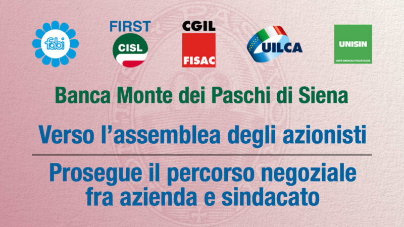 Riportiamo il comunicato unitario delle Segreterie di Coordinamento di Fabi, First Cisl, Fisac Cgil, Uilca Uil e Unisin in Banca Monte dei Paschi Siena: