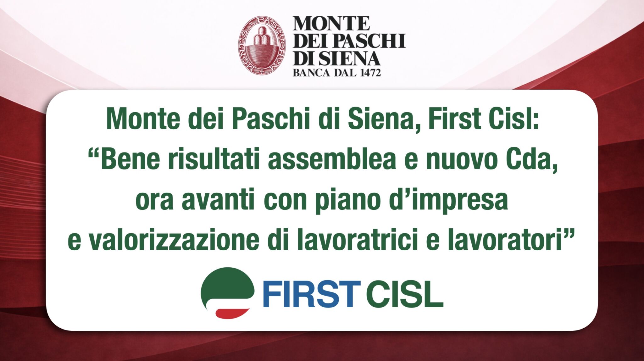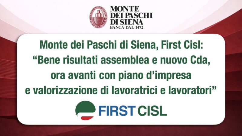“Con l’assemblea di oggi, che ha visto prevalere la lista di Plt Holding della famiglia Tortora con il 49,95% dei voti, si apre una fase importante per il futuro della banca. Riteniamo fondamentale, dopo un periodo di forte incertezza, culminato nell’assemblea odierna, ristabilire un’interlocuzione forte, aperta e franca con il nuovo Board. La direzione per noi è chiara: proseguire con l’attuazione del piano d’impresa coinvolgendo le organizzazioni sindacali in ogni fase e mantenendo coerenza con il disegno originario ovvero due business complementari, senza riduzione dell’occupazione, sinergie da ricavi e valorizzazione dei brand storici”. Lo ha dichiarato la Segretaria generale nazionale aggiunta First Cisl Sabrina Brezzo dopo l’assemblea dei soci che si è tenuta oggi a Siena.