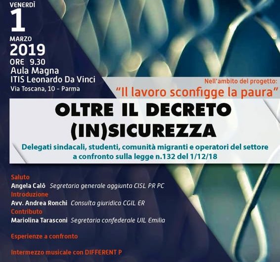 Il 1° marzo, alle ore 9,30, presso l’Itis da Vinci di Parma, si incontreranno delegati sindacali, studenti, comunità migranti e operatori del settore per confrontarsi sulla legge n. 132 del 1/12/18, già da più parti definito il “decreto in-sicurezza”.