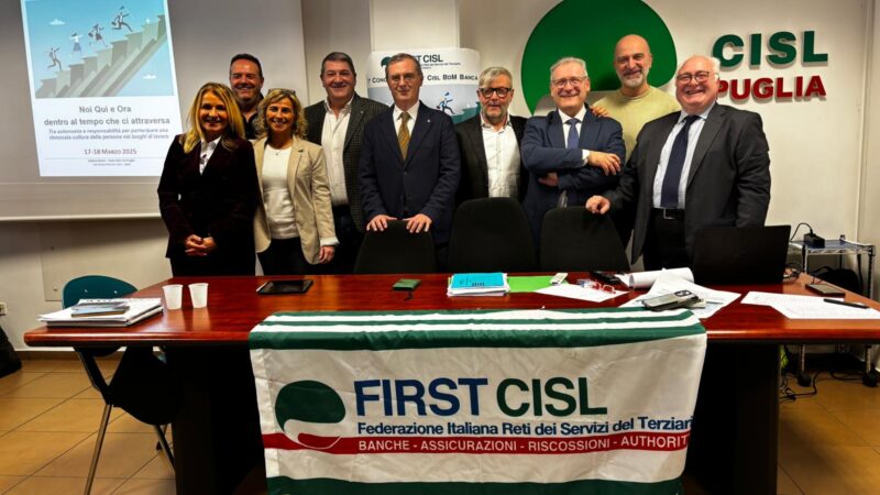 Come si legge sul sito First Cisl nazionale nei giorni 17 e 18 marzo 2025 si è svolto il 1° Congresso della Sas di complesso di First Cisl Bdm Banca (già Banca Popolare di Bari) alla presenza del coordinatore nazionale con delega Fabio Brunamonti e del Segretario generale First Cisl Puglia Pasquale Berloco, ha presieduto i lavori Enrico Ria Segretario generale aggiunto First Cisl di Puglia