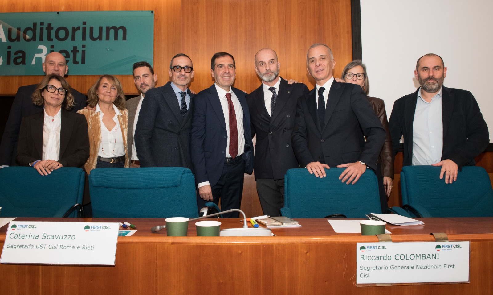 Direttivo First Cisl Roma e Rieti e del Consiglio Generale First Cisl del Lazio, alla presenza del Segretario generale nazionale First Cisl, Riccardo Colombani, dellaSegretaria organizzativa First Cisl nazionale Vilma Marrone, della Segretaria USR Cisl Lazio Maria Veltri, della Segretaria UST Cisl Roma Capitale e Rieti Caterina Scavuzzo, del Segretario generale First CislRoma e Rieti Gino Forcina e del Segretario generale First Cisl Lazio Claudio Quattrociocchi.