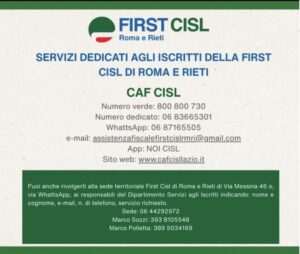 Tra pochi giorni parte la nuova campagna fiscale a favore delle iscritte e degli iscritti. Si tratta di una delle diverse attività svolte dal Dipartimento servizi agli iscritti First Cisl Roma e Rieti. Le iscritte e gli iscritti della federazione territoriale possono fruire infatti del significativo ventaglio di opportunità offerti dal CAF e dal Patronato Cisl, oltre che l’accesso a convenzioni direttamente stipulate dalla federazione territoriale.